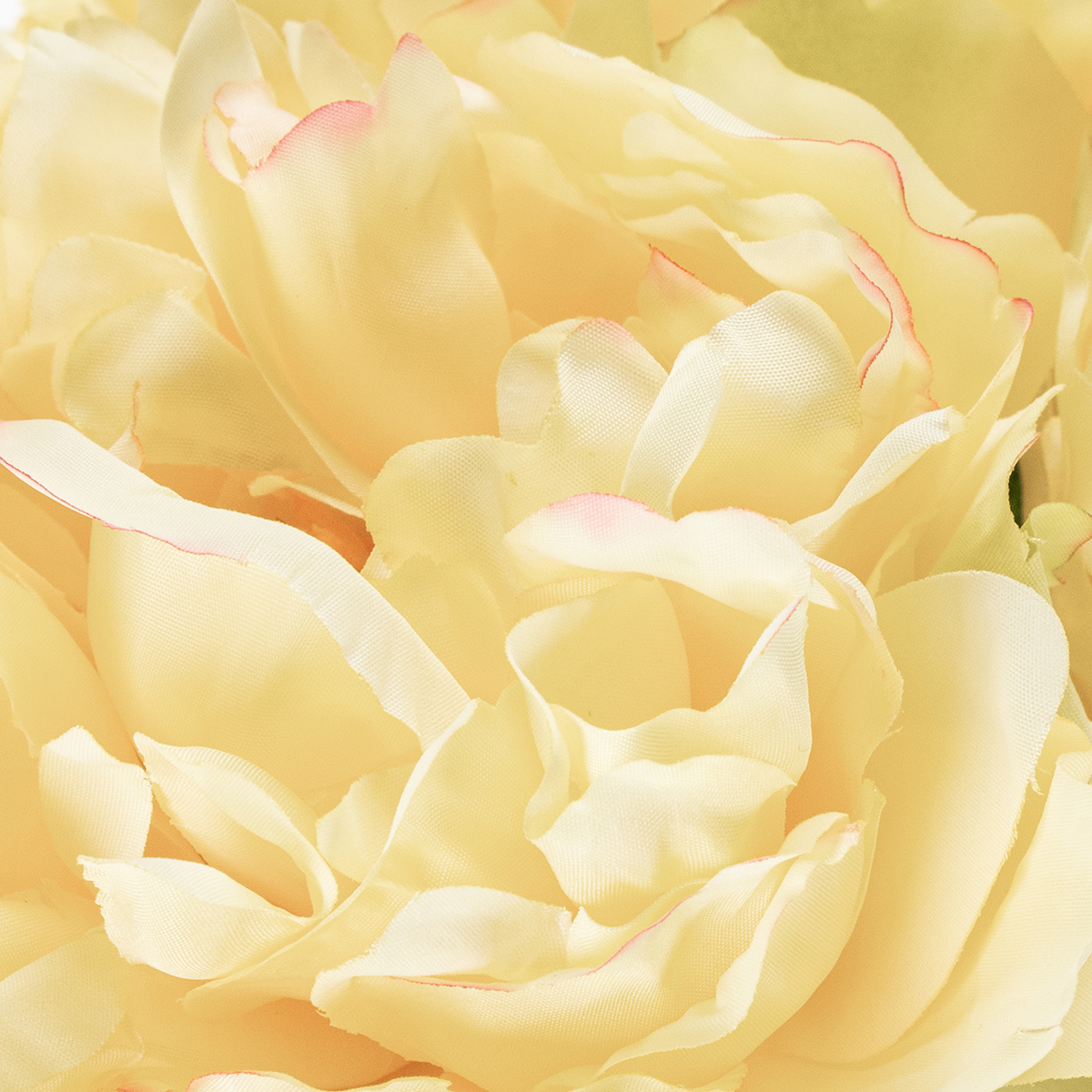 Nasze sztuczne piwonie to prawdziwa perełka w każdym stylu aranżacji wnętrz. Delikatny, żółty odcień kwiatów tworzy przyjazną i zachęcającą atmosferę, dzięki czemu idealnie pasują do nowoczesnych, skandynawskich, a nawet klasycznych aranżacji. Dzięki wysokiej jakości jedwabnej tkaninie kwiaty wyglądają niezwykle realistycznie. Idealne dla miłośników naturalnych kwiatów, którzy chcą uniknąć uciążliwego podlewania i więdnięcia. Kwiaty te są trwałe, łatwe w pielęgnacji i zachowują swoje pierwotne piękno przez lata.