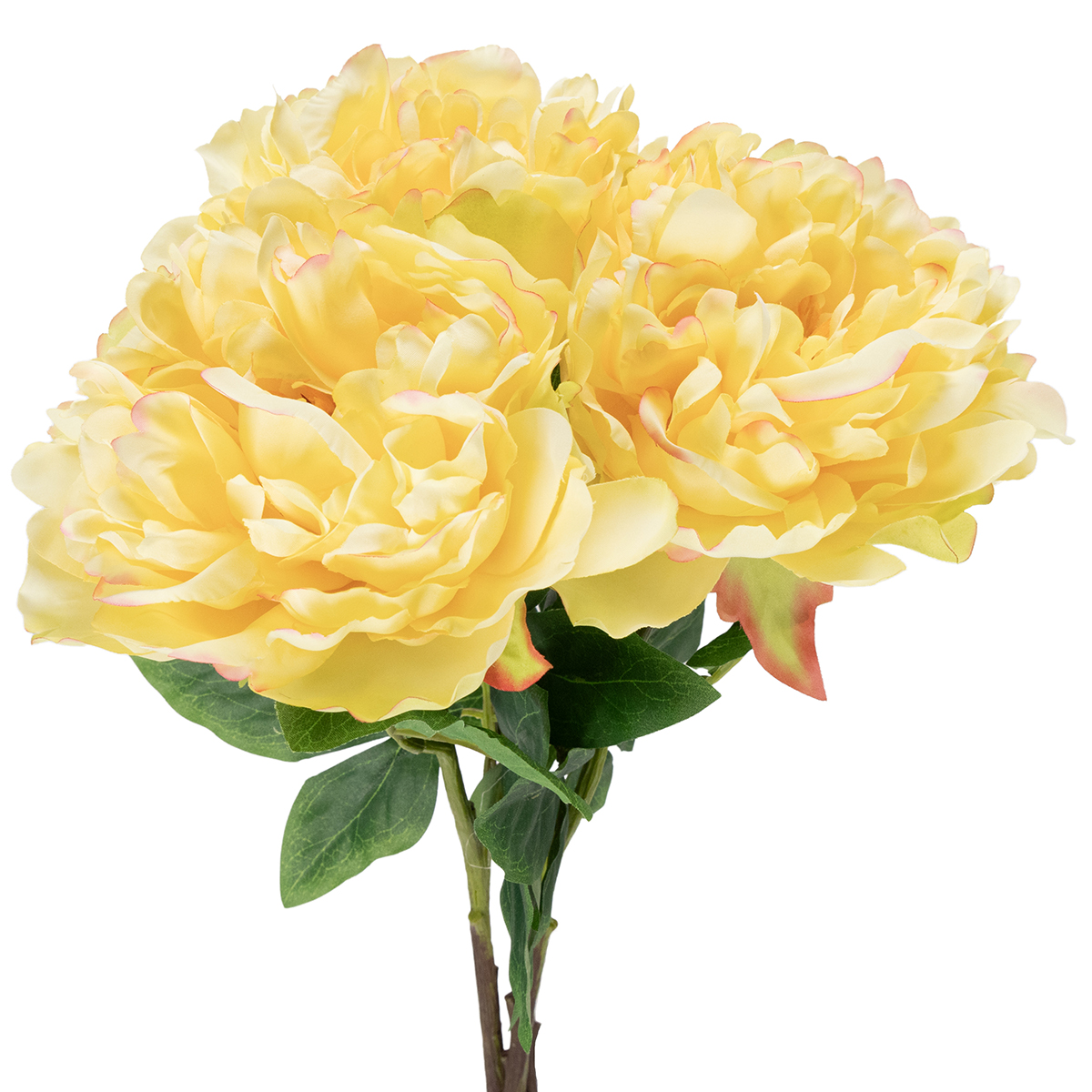 Szukasz sposobu na wzbogacenie swojej przestrzeni życiowej ponadczasowym urokiem i naturalnym pięknem? Nasze sztuczne piwonie o dużych kwiatach są właśnie tym, czego potrzebujesz! Mierzące 60 cm wysokości i imponujące, realistyczne kwiaty natychmiast wniosą powiew świeżości do Twojego domu lub biura. Żywa żółć kwiatów w połączeniu z soczystą zielenią liści tworzy żywą, intensywną barwę w każdym pomieszczeniu. Niezależnie od tego, czy umieścisz je pojedynczo na stole, czy w połączeniu z innymi elementami dekoracyjnymi, te sztuczne kwiaty z pewnością zrobią wrażenie od pierwszego wejrzenia i nie wymagają żadnej pielęgnacji. Idealne dla tych, którzy chcą cieszyć się stylową kompozycją kwiatową przez długi czas. Brzmi jak coś, co pasuje do Twojej koncepcji aranżacji wnętrz? Czytaj dalej i przekonaj się sam!