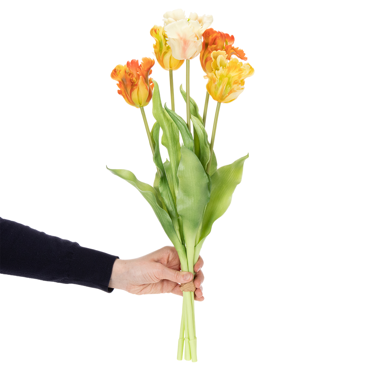 A może przekształcisz swój salon w kwitnący, wiosenny ogród – całkowicie bezobsługowy? Nasze wysokiej jakości sztuczne tulipany w soczystym pomarańczowym kolorze idealnie się do tego nadają! Niezależnie od tego, czy będą imponującą ozdobą stołu podczas śniadania z przyjaciółmi, czy efektownym akcentem na komodzie, te dekoracyjne tulipany wniosą świeżość i elegancję do każdego pomieszczenia. Wyglądają tak realistycznie, że trzeba się dwa razy przyjrzeć, żeby zdać sobie sprawę, że to nie są prawdziwe kwiaty. A co najlepsze: nie więdną, nie trzeba ich podlewać, nie więdną. Te sztuczne kwiaty pasują do niezliczonych stylów aranżacji wnętrz – od nowoczesnego po rustykalny. Ich urocze połączenie soczystej pomarańczy i delikatnych, naturalnie wyglądających liści sprawia, że są nie tylko ulubionym elementem salonu, ale także wszechstronnym dodatkiem na specjalne okazje, takie jak wesela, przyjęcia urodzinowe czy wiosenne dekoracje. Podaruj sobie kawałek wiosny, który nigdy nie więdnie!
