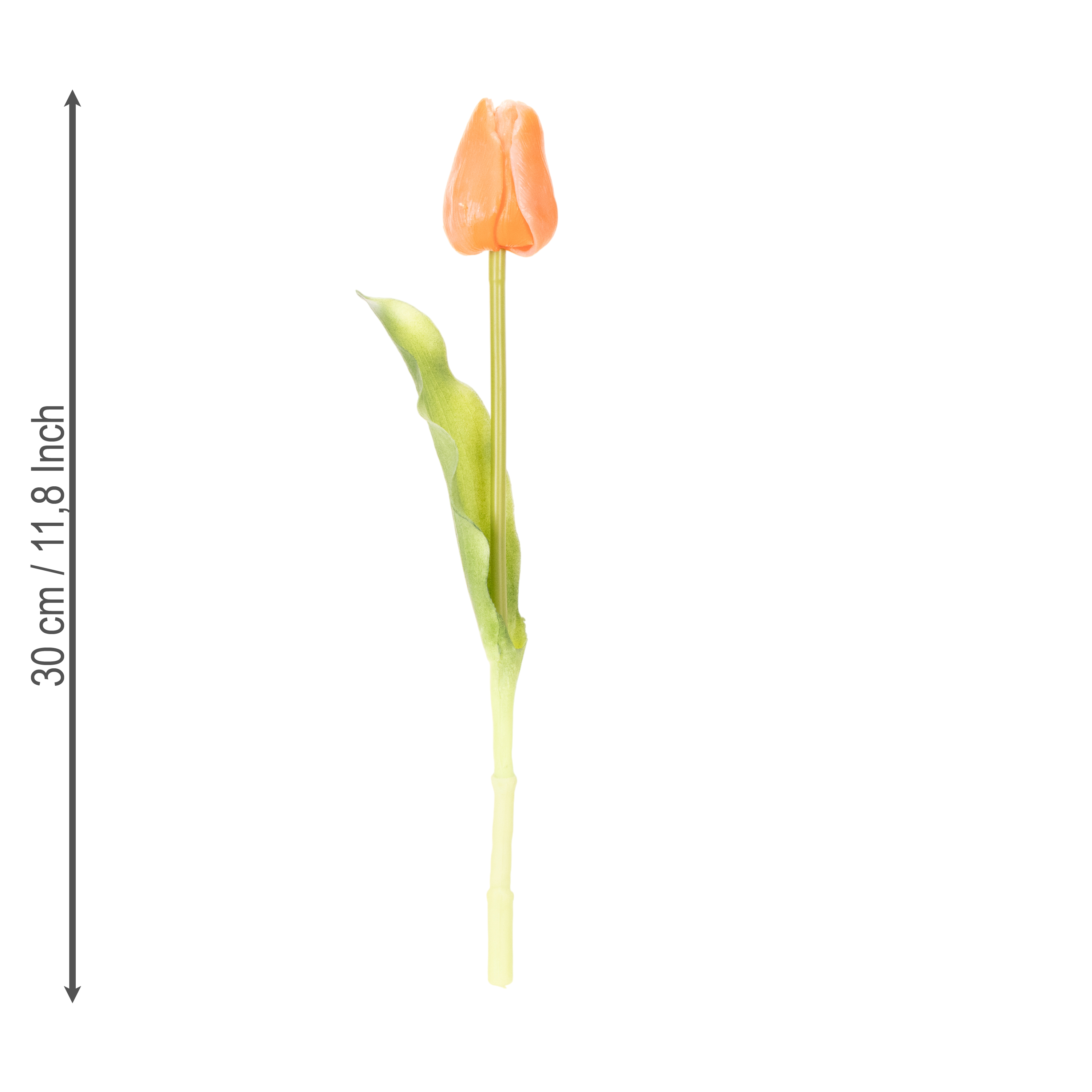 Chcesz odświeżyć swój dom? A może wiosenna dekoracja, która pozostanie świeża na zawsze? Nasze sztuczne tulipany łączą naturalną elegancję z praktyczną trwałością. Delikatne, harmonijnie ubarwione główki tulipanów w soczystym pomarańczowym kolorze dodadzą odrobinę koloru Twojemu salonowi, stołowi kuchennemu lub korytarzowi. Te sztuczne kwiaty o wysokości 30 cm są na tyle kompaktowe, że nadają się do wszechstronnych aranżacji, a jednocześnie wystarczająco duże, by zrobić wrażenie. Od momentu, gdy je zobaczysz, będziesz zachwycony ich realistycznym wyglądem. Te sztuczne kwiaty są idealne dla każdego, kto chce wnieść urok wiosny do swojego domu bez konieczności podlewania i pielęgnacji.