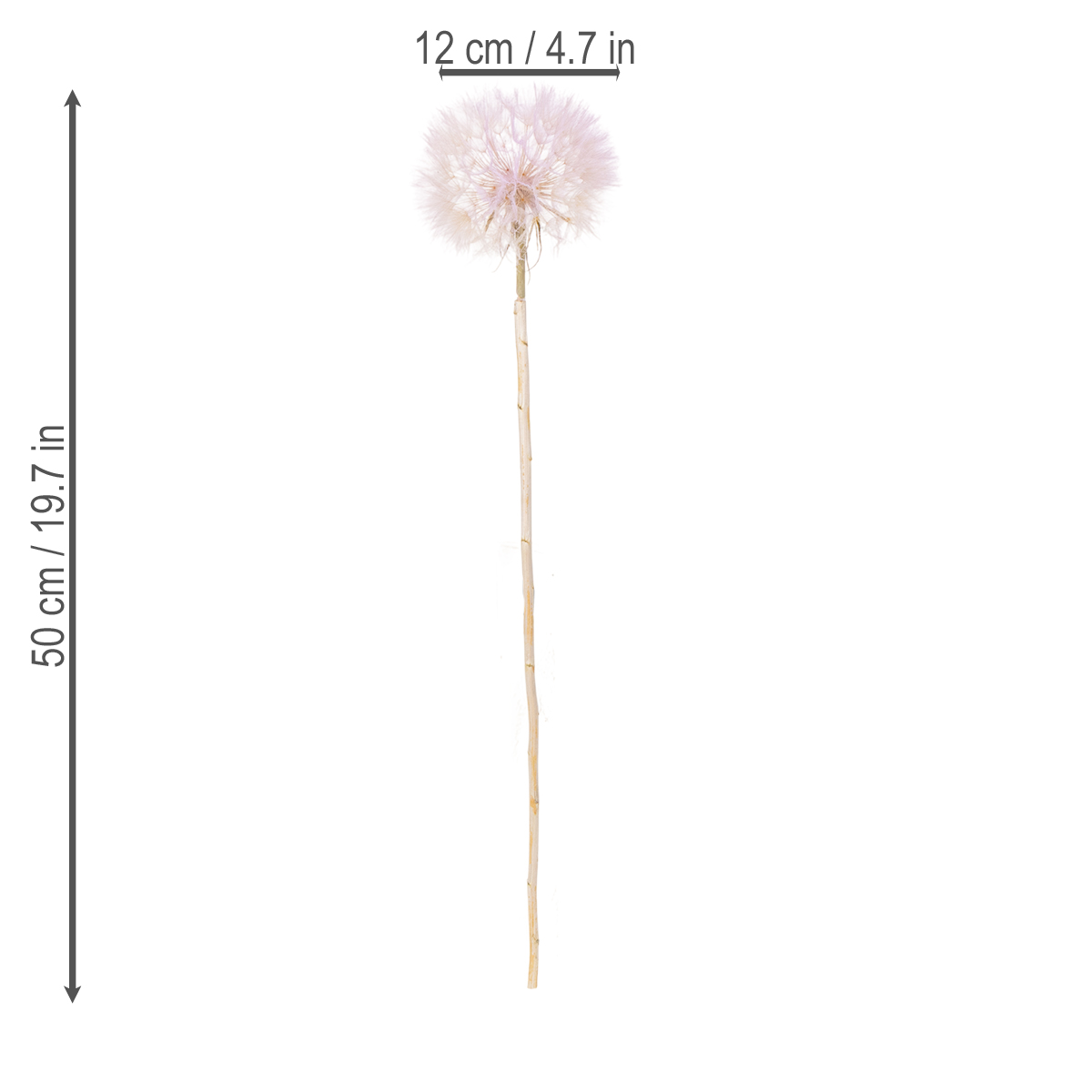 Ta sztuczna dekoracja z dmuchawca zachwyca doskonałą jakością i ponadczasowym wzornictwem. Mierząca 50 cm wysokości i 12 cm średnicy, ta stylowa roślina idealnie nadaje się do wazonów lub jako dodatek do nowoczesnych aranżacji. Jej delikatny różowy odcień pięknie się wyróżnia i idealnie komponuje z trendami wnętrzarskimi, takimi jak styl skandynawski, japoński czy minimalizm. Tworzy również elegancki efekt w połączeniu z naturalnymi materiałami, takimi jak drewno czy kamień.