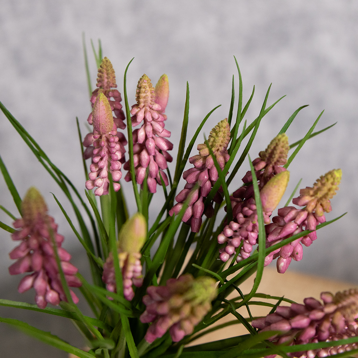 Zbliża się wiosna, a wraz z nią pragnienie świeżych, kolorowych dekoracji do Twojego salonu. Ale co powiesz na trwałą, łatwą w pielęgnacji alternatywę tym razem? Nasz sztuczny hiacynt winogronowy wnosi powiew wiosennej świeżości – bez więdnięcia i blaknięcia. Czy to na parapecie, stole w jadalni, czy w pięknym wazonie na komodzie, ten realistycznie zaprojektowany kwiat z pewnością przyciągnie wzrok każdego. Dzięki delikatnemu różowemu odcieniowi i delikatnemu wykonaniu harmonijnie wpisuje się w różnorodne style aranżacji wnętrz – od romantycznego, rustykalnego szyku po nowoczesny minimalizm. Chcesz dodać uroku wiosennemu akcentowi do swojego domu? Odkryj potencjał sztucznego hiacynta winogronowego!