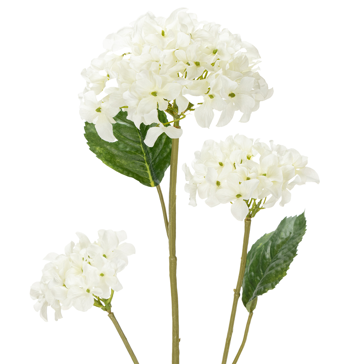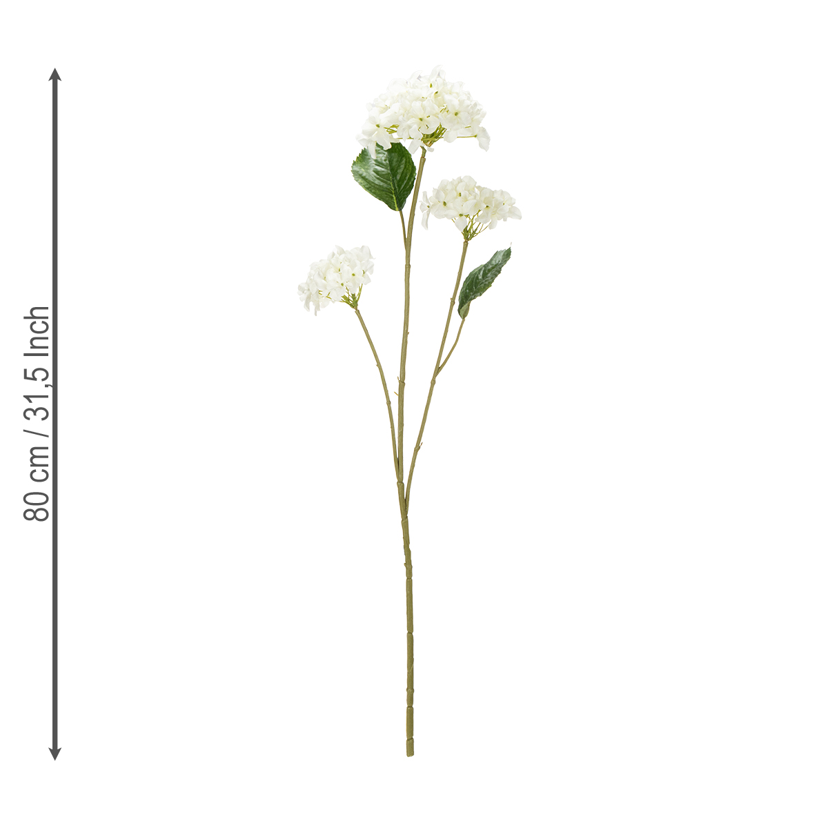 Czy zastanawiałeś się kiedyś, jak dodać swojemu domowi eleganckiego i ponadczasowego akcentu przy minimalnym wysiłku? Sztuczne hortensje mogą być właśnie tym, czego szukasz! Ten biały sztuczny kwiat zachwyca swoim pozornie realistycznym wyglądem i wszechstronnością. Niezależnie od tego, czy będzie ozdobą nowoczesnych salonów, częścią stylowej aranżacji stołu, czy imponującym akcentem w recepcji – ten trwały, dekoracyjny kwiat idealnie wkomponuje się w każdą aranżację. Trzy bujne kwiaty i dwa zielone liście zdobią delikatną łodygę, nadając kompozycji wyjątkowo naturalny wygląd. Mierząca 80 cm wysokości i 30 cm szerokości, idealnie nadaje się do większych wazonów lub dekoracyjnych aranżacji podłogowych. Wysokiej jakości konstrukcja z poliestru i tworzywa sztucznego gwarantuje, że ten elegancki sztuczny kwiat będzie Ci służył przez długi czas.