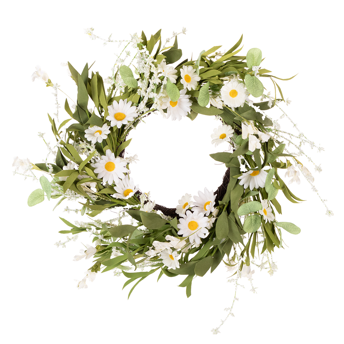 Nazwa produktu: Sztuczny wianek ze stokrotek, naturalny wygląd i trwałość, do dekoracji drzwi i ścian, 55 cm