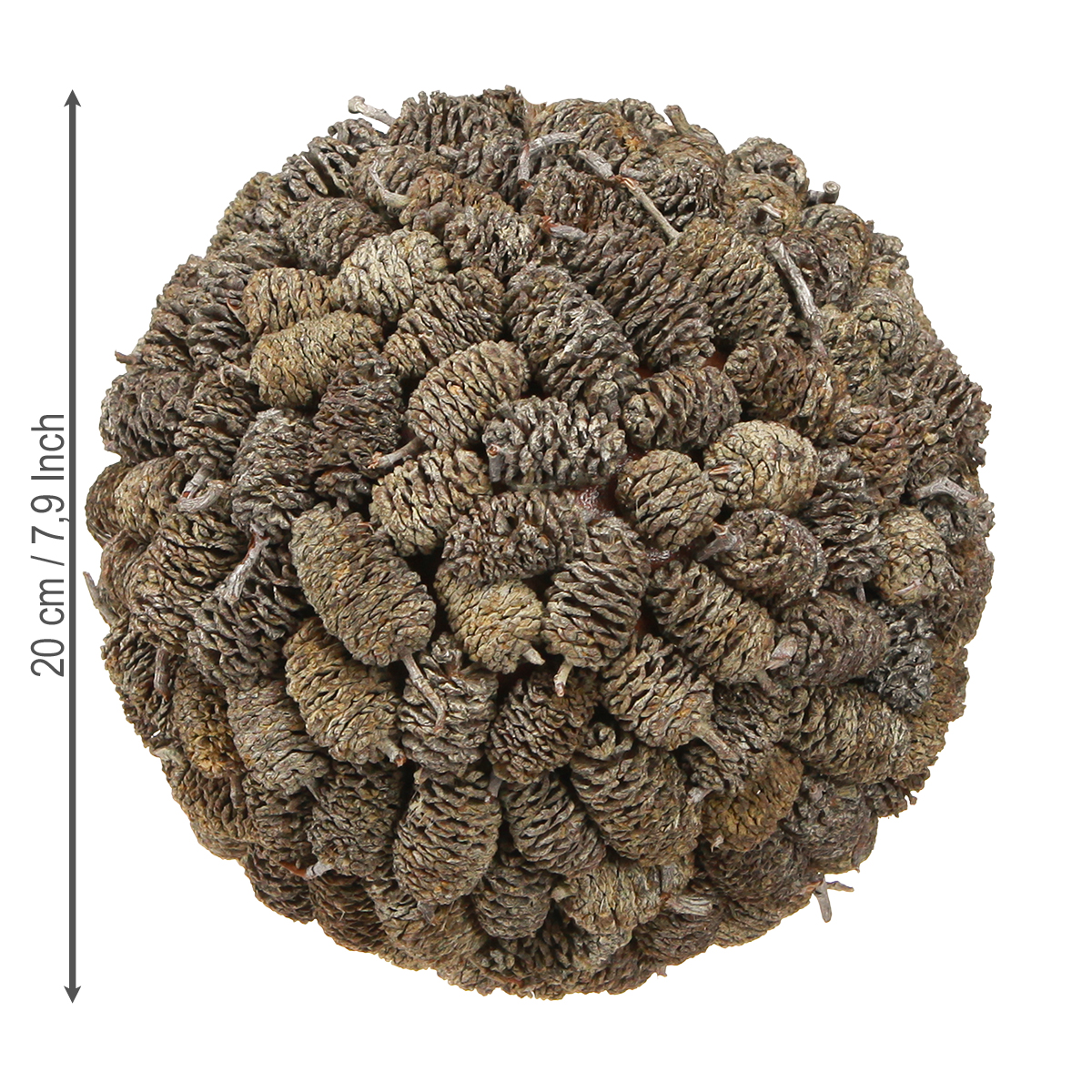Idealne połączenie natury i stylu: Ta dekoracyjna kula z bielonych szyszek olchy wniesie rustykalny klimat do Twojego domu. Czy to przytulna w salonie, nastrojowa w okresie świątecznym, czy jako wisząca dekoracja ścienna w przedpokoju – zapewni naturalną elegancję i harmonię. Czy rozważałeś już ozdobienie nią parapetu lub z miłością udekorowanie kącika pamięci? Jutowy wieszak sprawia, że kula jest wyjątkowo uniwersalna i można ją aranżować na wiele sposobów w zależności od pory roku.