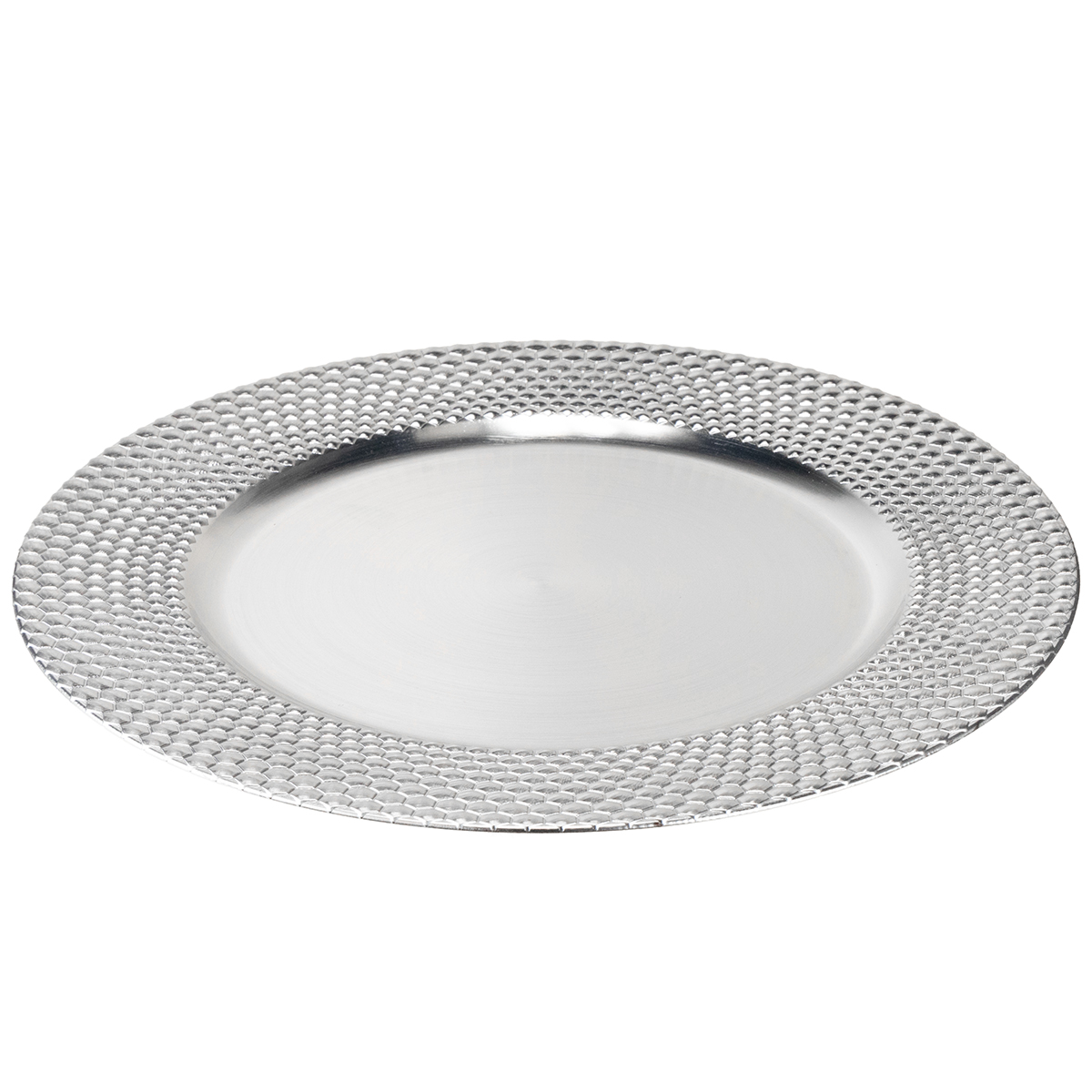 Ale to sześciokątny wzór na krawędzi sprawia, że talerz przyciąga wzrok. Srebrny kolor nadaje talerzowi dekoracyjnemu wspaniały blask. Spód pozostaje nieobrobiony w kolorze czarnym.
