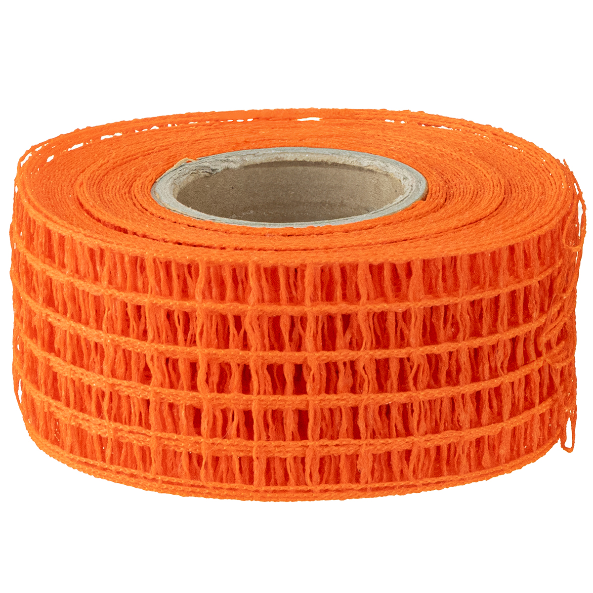 Taśma kratowa w kolorze pomarańczowym oferowana jest jako mała rolka o długości około 10 metrów. Sama taśma ma około 4,5 centymetra szerokości.