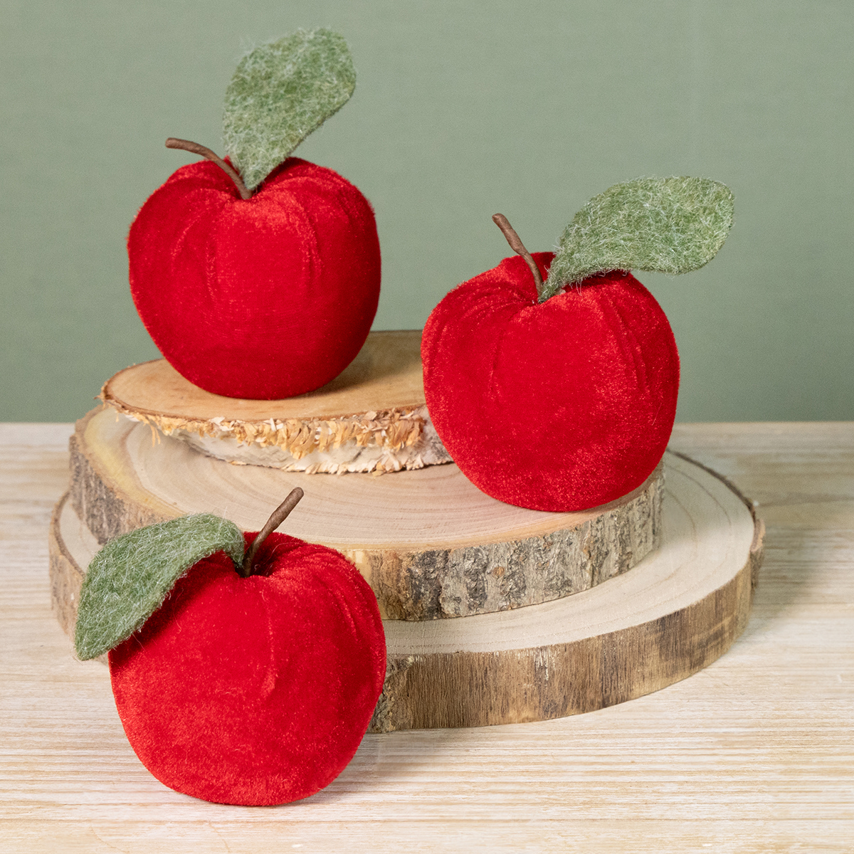 Tkanina dekoracyjna jabłko z aksamitem i filcem w kolorze czerwonym Ø7,5cm wys.9cm 9 szt.