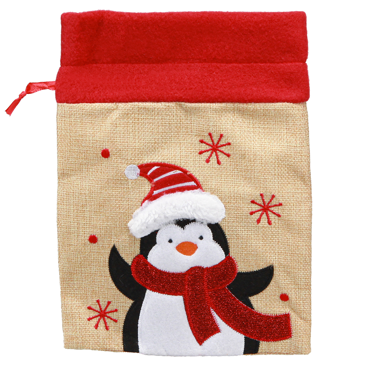 Nasze torby dekoracyjne i upominkowe na Boże Narodzenie i Mikołaja, ozdobione trzema uroczymi motywami bałwana, pingwina i Świętego Mikołaja, zachwycają swoim kochanym designem i funkcjonalnością. Niezależnie od tego, czy będą to torby na prezenty świąteczne, czy ozdobne przechowywanie - te torby jutowe wzbogacą każdą uroczystość. Wytrzymałe i można je prać w temperaturze 40°C. Są nie tylko praktyczne, ale także trwałe, ponieważ nadają się do wielokrotnego użytku.