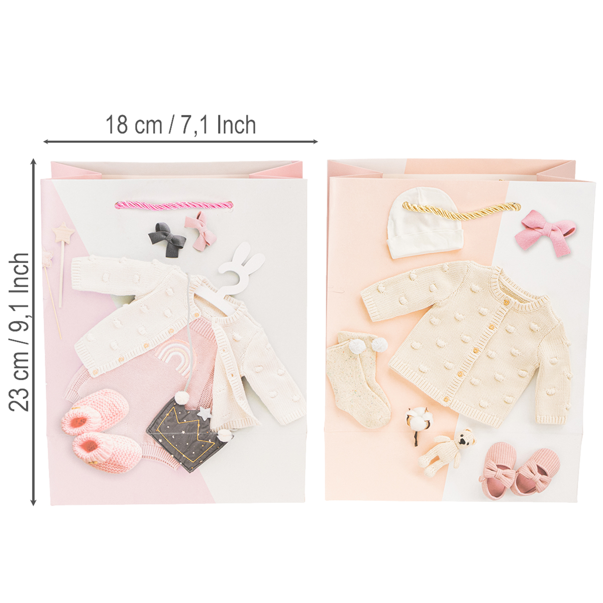Torebki prezentowe dla dziewczynek, torebki prezentowe z okazji narodzin dziecka, 23×18 cm, 2 sztuki