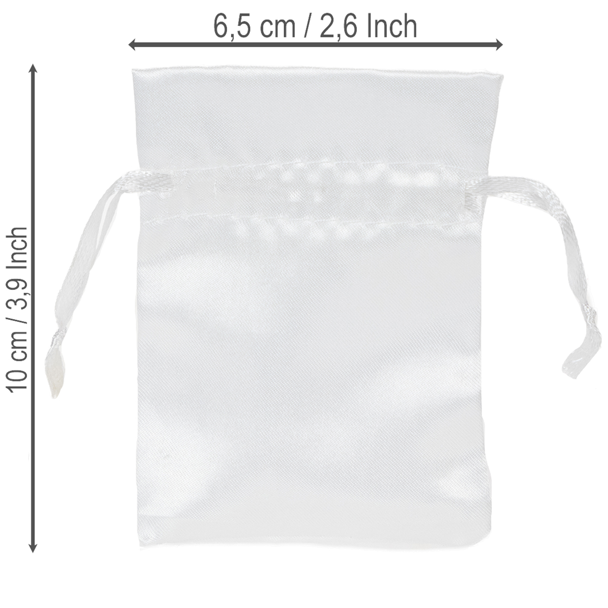Nazwa produktu: Torebki prezentowe, satynowe woreczki, białe, 6,5 x 10 cm, 10 szt.