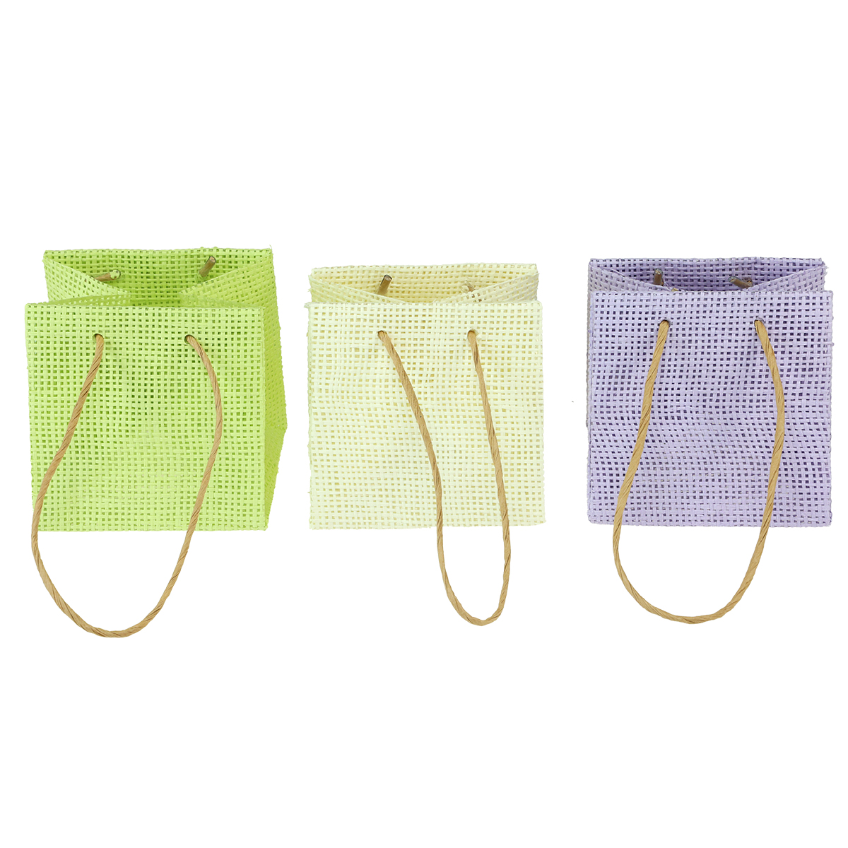 Torebki upominkowe tkane z uchwytami zielone, żółte, fioletowe 10,5cm 12 szt