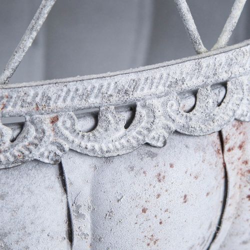 Stara metalowa misa-trofeum będzie niezwykłą ozdobą Twojego domu lub ogrodu. Zaprojektowana na wzór antycznej klatki dla ptaków, łączy w sobie styl vintage z wykończeniem w stylu shabby chic. Dzięki eleganckiej, szaro-białej powierzchni i uroczym akcentom rdzy, ta metalowa dekoracja wniesie odrobinę nostalgii do każdego pomieszczenia. Ta dekoracyjna misa-trofeum jest uniwersalna: może służyć jako ekskluzywny, zabytkowy wazon na kwiaty lub stylowa metalowa klatka dla ptaków. Dzięki zdejmowanej pokrywie jest to klasyczny dodatek w swojej klasie. Połączenie miski w kształcie pucharu i metalowego blatu w stylu klatki dla ptaków idealnie komponuje się z innymi elementami wystroju rustykalnego lub boho. W pełni prezentuje swój efekt zwłaszcza w salonie lub jako atrakcja na imprezach. Daj się ponieść kreatywności i udekoruj miskę ptakami z piór, sztucznymi motylami lub pnączami, by stworzyć indywidualną aranżację.
