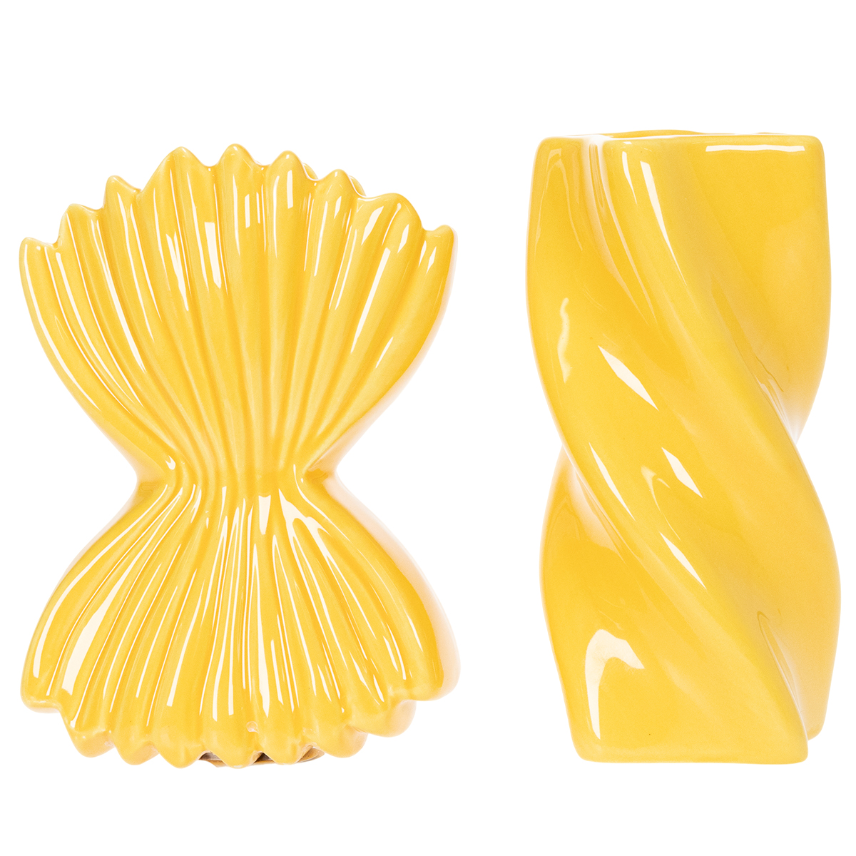Te dekoracyjne ceramiczne wazony urzekają od pierwszego wejrzenia wyjątkowym wzornictwem, inspirowanym zabawnymi kształtami popularnego włoskiego makaronu. Idealne dla miłośników oryginalnych dekoracji i nowoczesnych, designerskich elementów! Połączenie żywej żółci i finezyjnego wzornictwa sprawia, że te wazony stanowią stylowy dodatek do salonów i biur w stylu śródziemnomorskim. Połącz te designerskie elementy z prostym obrusem lub dekoracjami inspirowanymi stylem śródziemnomorskim, aby uzyskać harmonijny wygląd.