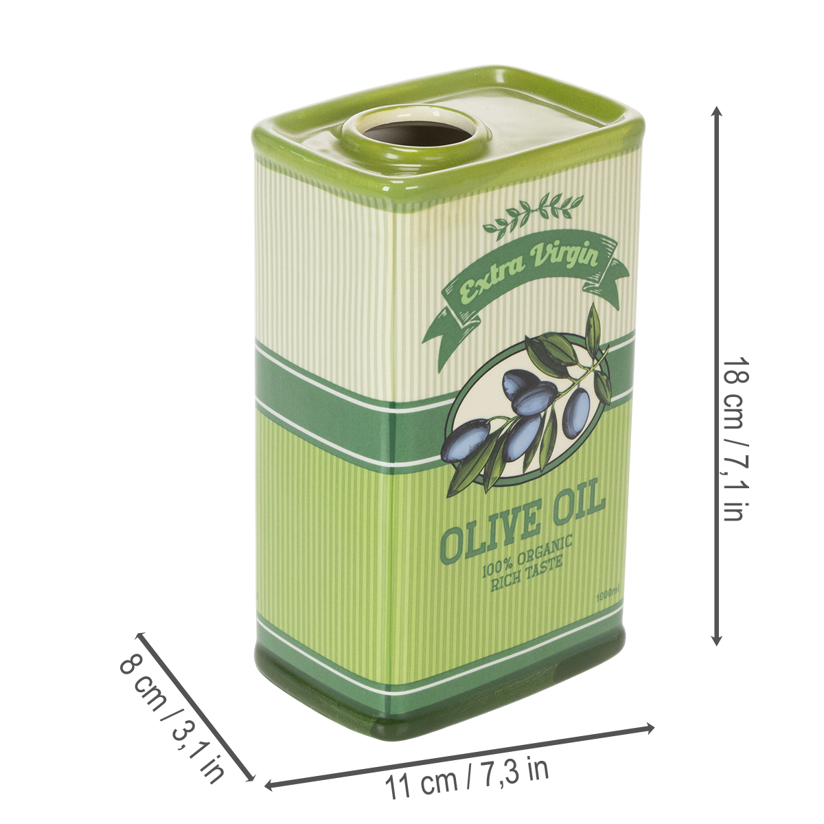 Nasz ceramiczny wazon na oliwę zachwyca detalami, które od razu rzucają się w oczy: nostalgiczny, retro design, inspirowany kuchniami śródziemnomorskimi, odzwierciedla tradycję i styl. Wysokiej jakości zielony odcień wnosi naturalną świeżość do każdego wnętrza, niezależnie od tego, czy jest to nowocześnie zastawiony stół, czy rustykalna, rustykalna kuchnia. Duża pojemność i szeroki otwór sprawiają, że nalewanie oliwy jest wyjątkowo łatwe. A gdy ten uroczy wazon nie jest używany jako pojemnik, sam w sobie staje się efektownym elementem dekoracyjnym.