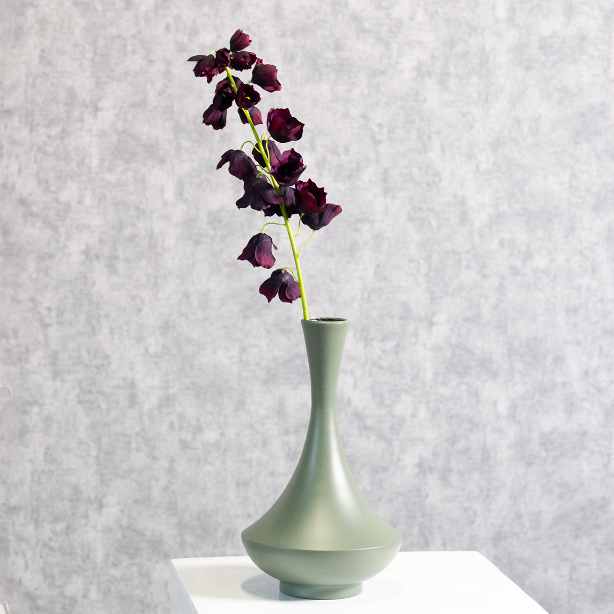 Ten dekoracyjny wazon urzeka harmonijnie wygiętym kształtem i wysokiej jakości metalowym wykonaniem. Matowe, zielone wykończenie jest jednocześnie subtelne i eleganckie, podkreślając jego nowoczesny charakter. Niezależnie od tego, czy będzie centralnym punktem jadalni, ozdobą komody, czy stylowym elementem na biurku, jego wszechstronność czyni go niezbędnym dodatkiem w każdym domu. Wysokość 33 cm sprawia, że idealnie wpasuje się w każde wnętrze, jednocześnie robiąc wrażenie. Pokochają go miłośnicy minimalistycznej estetyki – ale pięknie prezentuje się również w połączeniu z innymi elementami dekoracyjnymi.