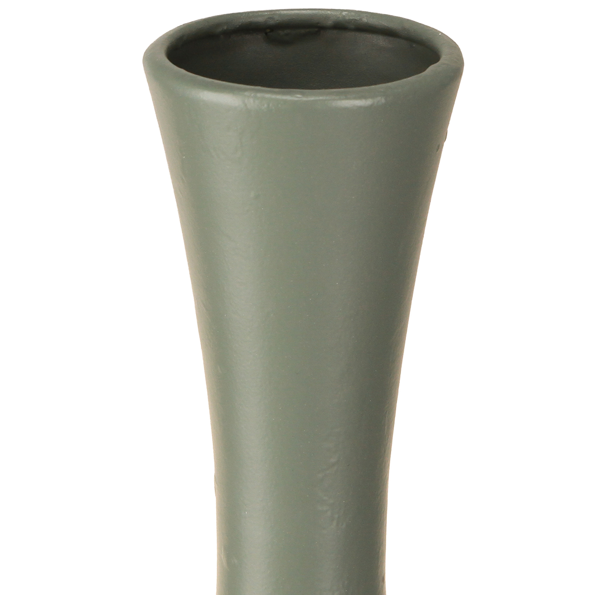 Ten dekoracyjny wazon urzeka harmonijnie wygiętym kształtem i wysokiej jakości metalowym wykonaniem. Matowe, zielone wykończenie jest jednocześnie subtelne i eleganckie, podkreślając jego nowoczesny charakter. Niezależnie od tego, czy będzie centralnym punktem jadalni, ozdobą komody, czy stylowym elementem na biurku, jego wszechstronność czyni go niezbędnym dodatkiem w każdym domu. Wysokość 33 cm sprawia, że idealnie wpasuje się w każde wnętrze, jednocześnie robiąc wrażenie. Pokochają go miłośnicy minimalistycznej estetyki – ale pięknie prezentuje się również w połączeniu z innymi elementami dekoracyjnymi.
