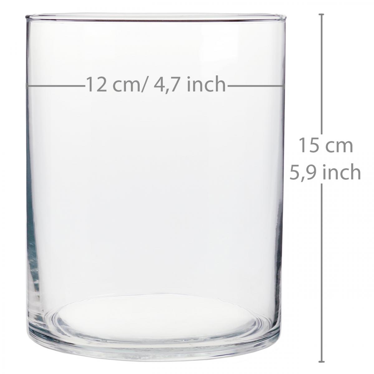 Wazon z przezroczystego szkła ma około 15 centymetrów wysokości. Średnica wynosi około 12 centymetrów.Średnica: ok. Ø12cm