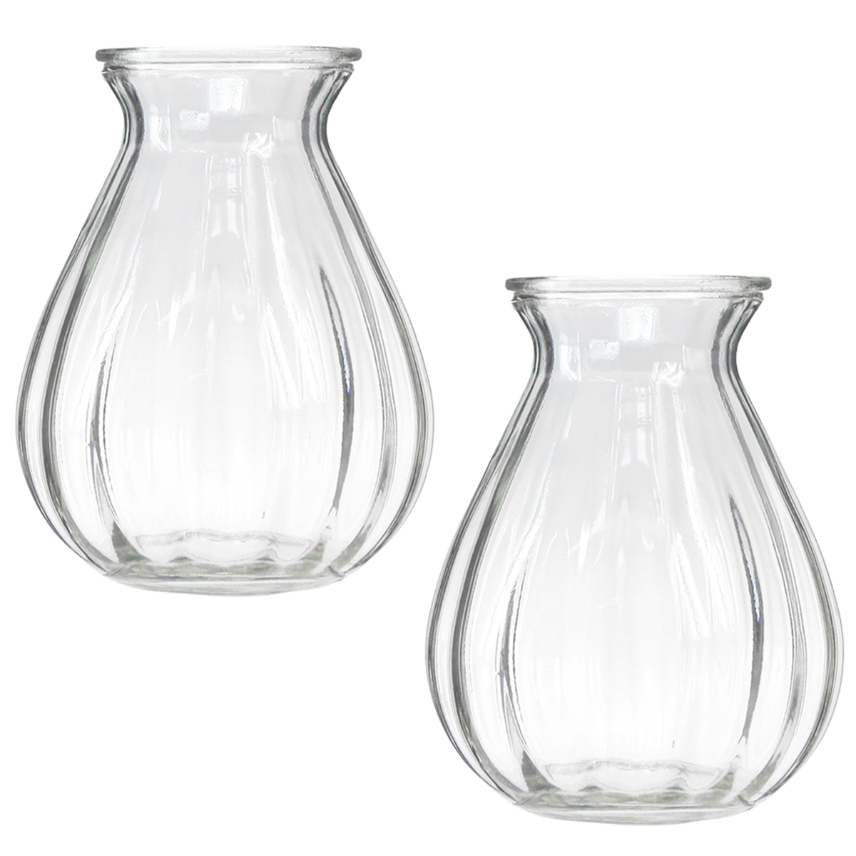 Wazon szklany wazon bulwiasty z rowkami przezroczysty Ø11cm W14cm 2szt