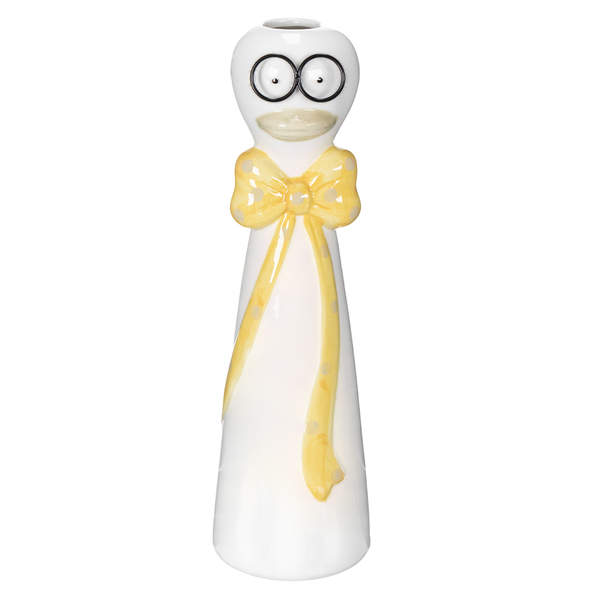 Szukasz wyjątkowego wazonu, który jest zarówno praktyczny, jak i z pewnością wywoła uśmiech na Twojej twarzy? Nasz uroczy wazon z kaczką to właśnie to, czego potrzebujesz! Ma 24 cm wysokości i zachwyca takimi uroczymi detalami jak żółta wstążka, z pewnością będzie zachwycającą ozdobą stołu. Niezależnie od tego, czy postawisz go na stole w jadalni, na parapecie, czy jako wyjątkowy pomysł na prezent, ten zestaw dwóch ceramicznych wazonów w kolorze białym i żółtym doda Twojemu wnętrzu radosnego akcentu.