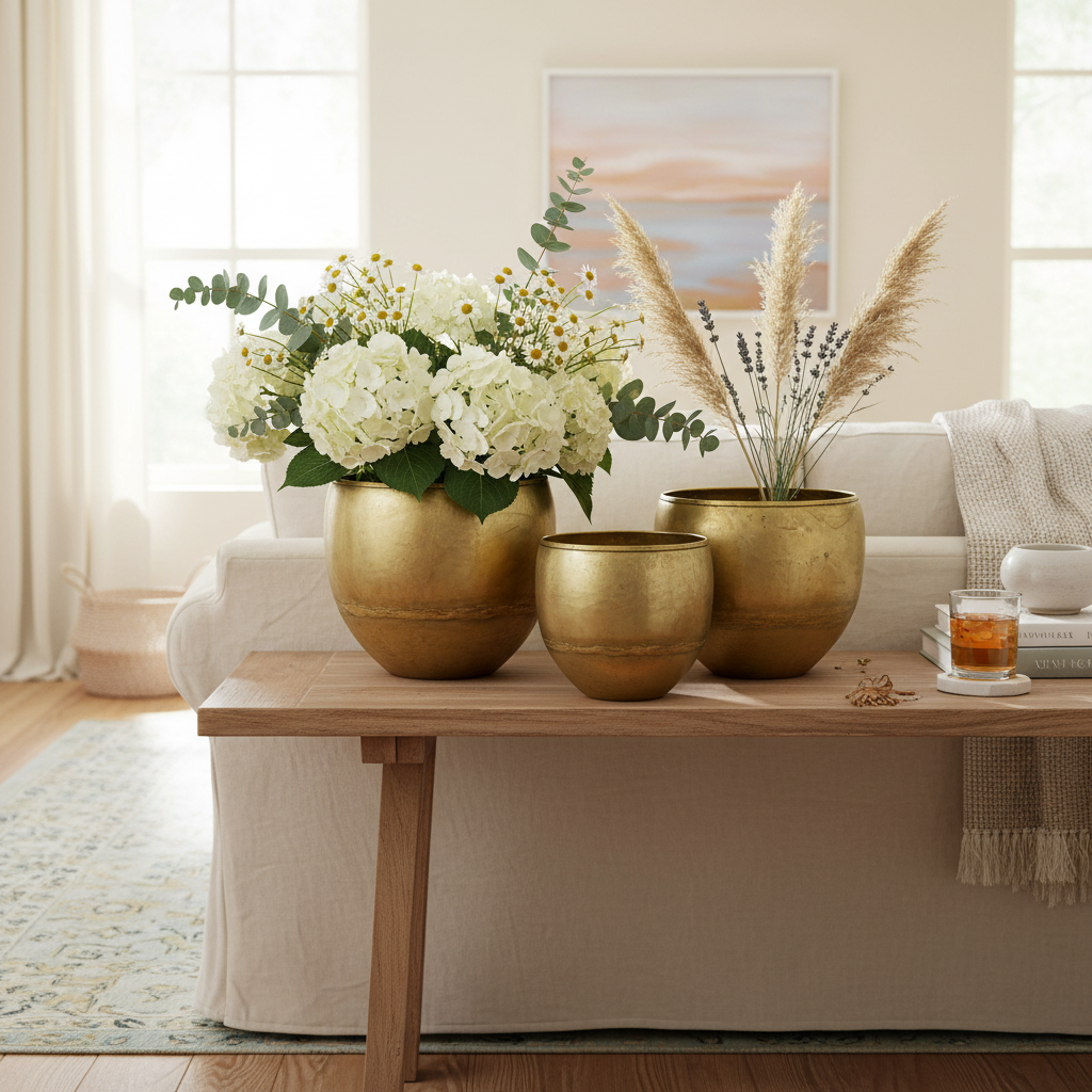Ale oczywiście możesz wykorzystać całą objętość, wypełniając metalowe wazony ozdobnym piaskiem lub ozdobnymi kamieniami. Alternatywnie możesz umieścić w nim piankę florystyczną i napełnić metalowy pojemnik sztucznymi lub suszonymi kwiatami, jak chcesz.