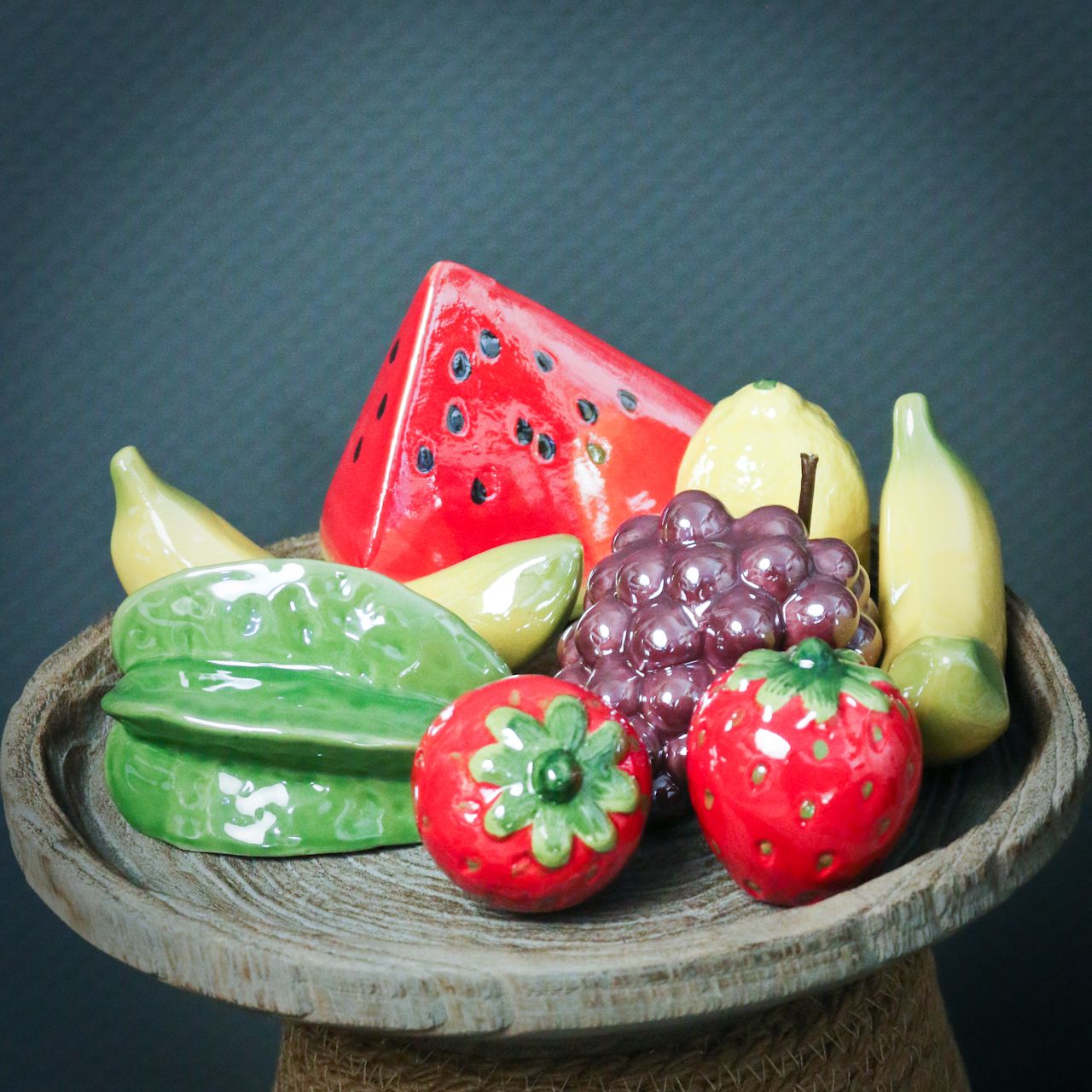 Czy to w kuchni, w salonie, czy też jako atrakcyjna dekoracja restauracji, owoce dekoracyjne szlachetnej marki VIANA przyciągają wzrok. Na przykład, można ustawić fascynujący akcent w obszarze wejściowym przez umieszczenie winogron deco i może zorganizować razem z prawdziwymi liśćmi winogron. Również w połączeniu z innymi dekoracyjnymi owocami wykonanymi z ceramiki, można wyczarować uroczą dekorację stołu. Wystarczy ułożyć owoce na ozdobnej misce. Taki zestaw jest ozdobą par excellence przez cały rok.