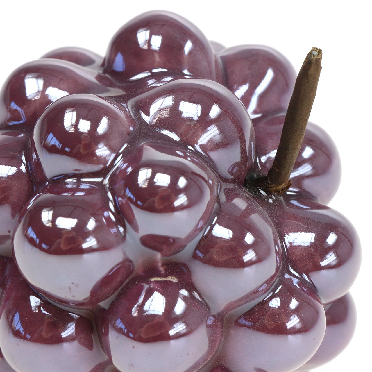 Liliowe winogrono z ceramiki szkliwionej występuje w zestawie dwóch sztuk. Wymiary rzeźby owoców to około 10 na 7,5 na 6,5 centymetra.