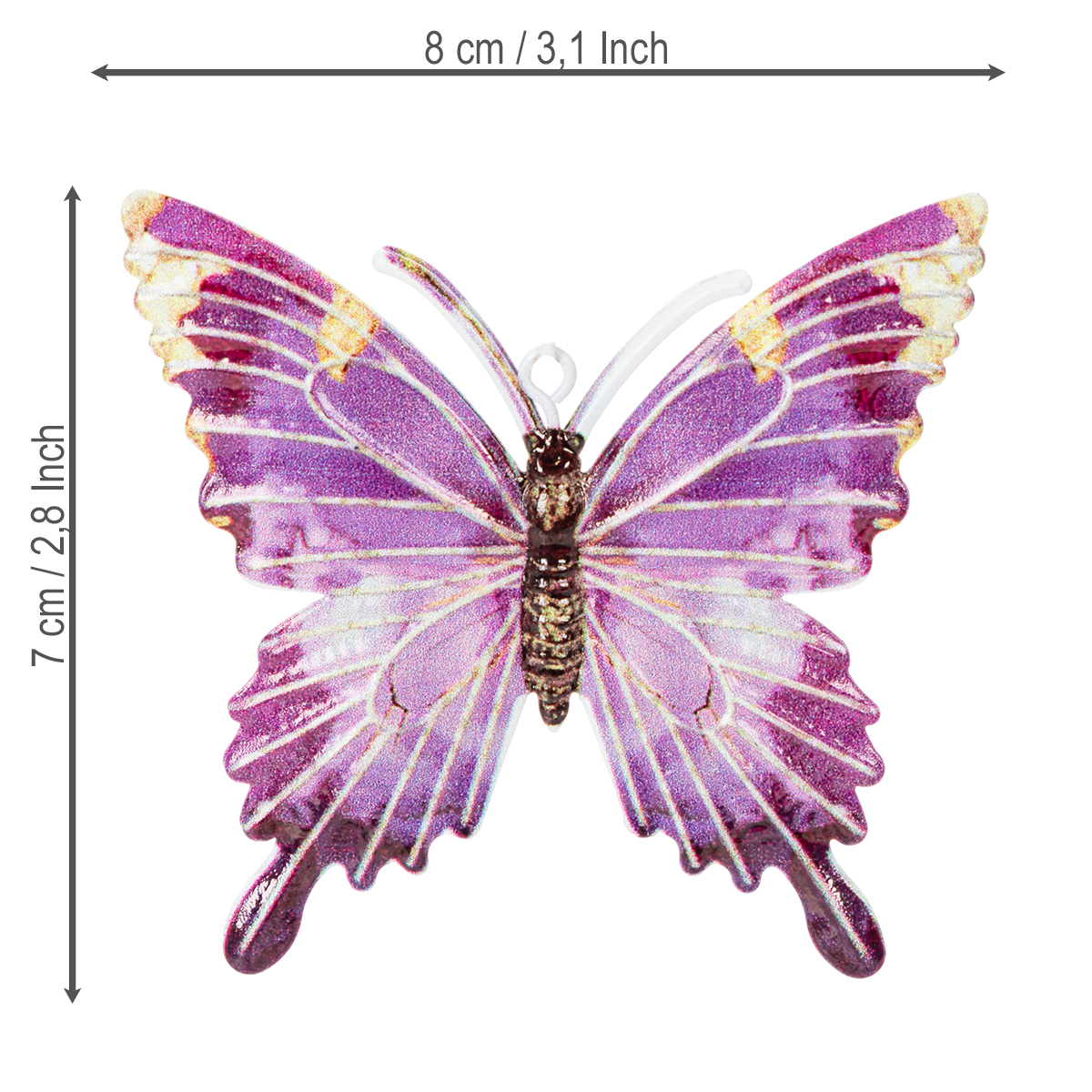 Ten zestaw wisiorów z motylami zachwyca harmonijnym połączeniem funkcjonalności i estetycznego uroku. Mierząc 8 centymetrów wysokości i zaledwie 0,5 centymetra szerokości, nie są ani za małe, ani za duże – idealnie nadają się do dekoracji okiennych, dekoracji ściennych lub zawieszenia na gałęziach. Ich niewielka waga pozwala na umieszczenie ich w dowolnym miejscu bez dodatkowego obciążenia.