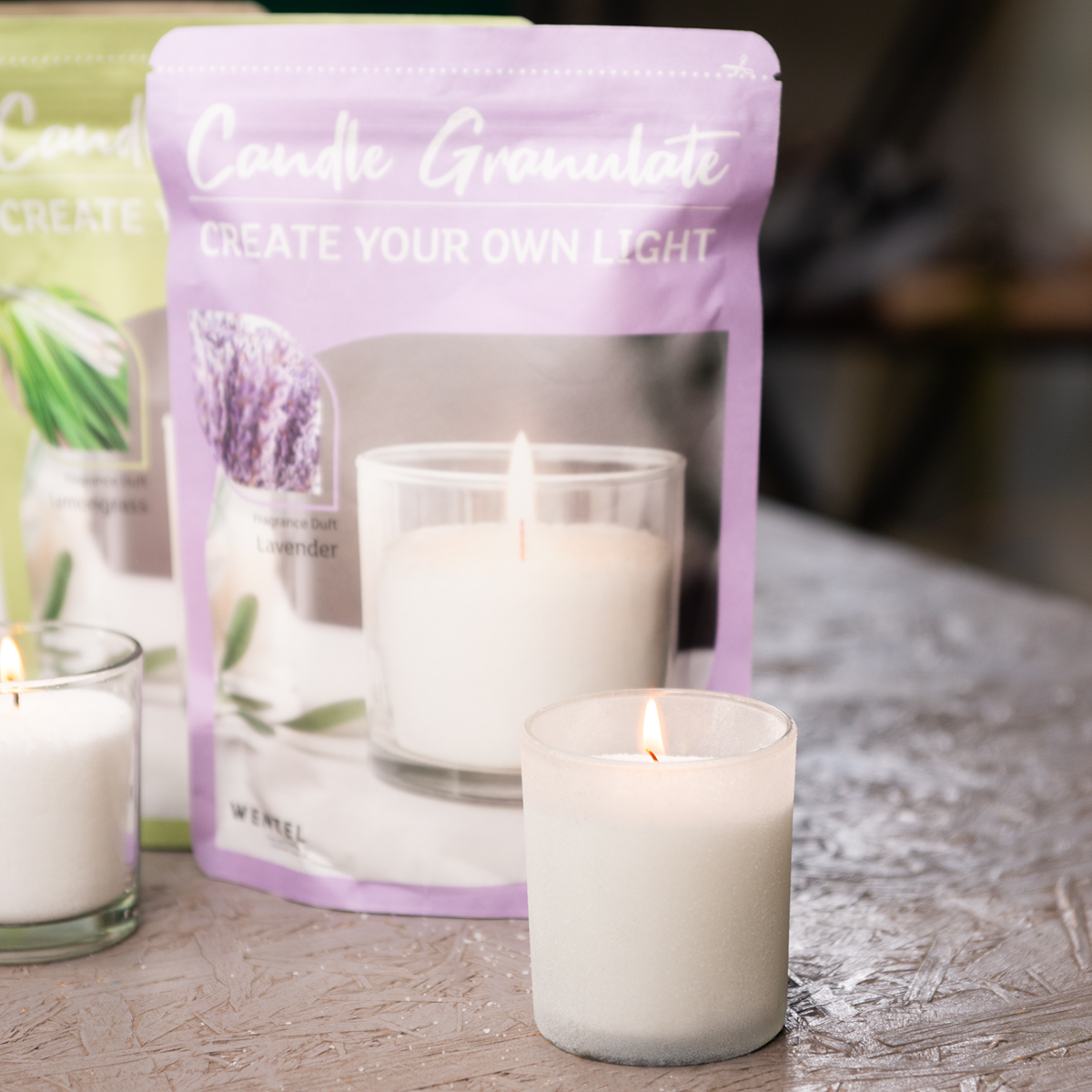 Granulki wosku są wszechstronne i idealnie nadają się do świec w szkle. Miękki biały kolor granulek zapewnia ciepłe, zachęcające światło i uzupełnia każde wnętrze.