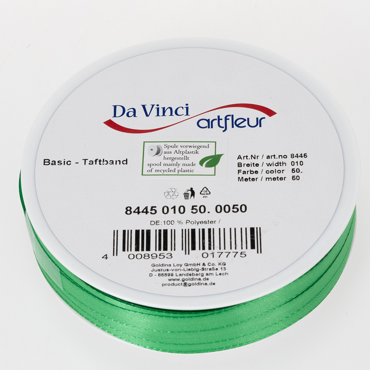 Ta zielona wstążka dekoracyjna ma wszystko, czego można oczekiwać od wszechstronnej wstążki materiałowej. Ma 10 milimetrów szerokości i 50 metrów długości, jest zarówno poręczna, jak i ekonomiczna. Jej żywy, a zarazem subtelny zielony kolor doskonale uzupełnia kompozycje kwiatowe, zarówno w połączeniu ze świeżymi kwiatami, jak i jako element prostej, eleganckiej zastawy stołowej. Jedwabisty połysk przyciąga wzrok, a solidny, tkany brzeg zapobiega strzępieniu się – idealny do projektów o długiej żywotności.