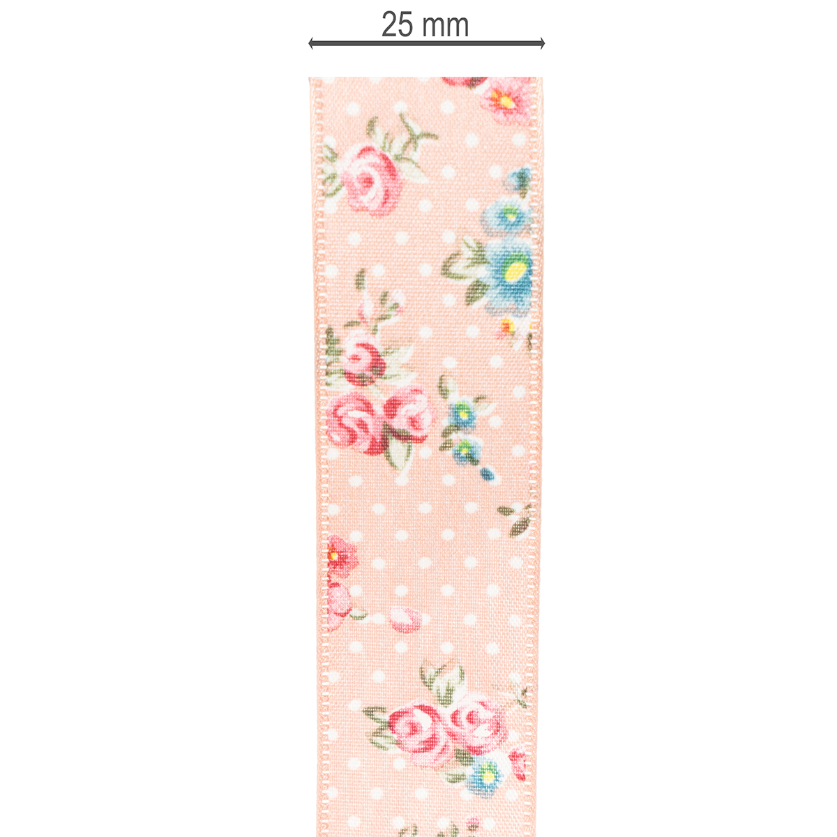 Nasza kwiatowa wstążka do prezentów nie pozostawia nic do życzenia. Delikatny róż w połączeniu z niebieskimi akcentami i delikatnymi kwiatowymi wzorami wnosi nutę nostalgii i lekkości do każdego projektu. Szerokość 2,5 cm sprawia, że jest poręczna do precyzyjnych prac rękodzielniczych, a jednocześnie delikatna i wytrzymała, aby niezawodnie utrzymać kokardy. Matowe wykończenie i trwały materiał z pewnością zrobią wrażenie.