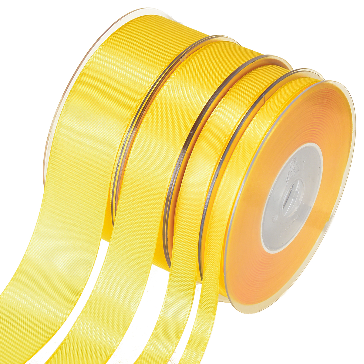 Wstążka do prezentów i dekoracji w kolorze żółtym jest oferowana w różnych szerokościach, które można wybrać w prawej górnej zakładce. Każdy wariant ma długość około 50 metrów.