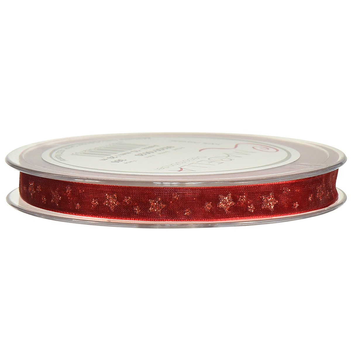 Wstążka z organzy czerwona z błyszczącymi gwiazdkami – wstążka świąteczna 10mm 20m