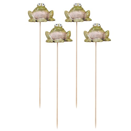 Żaba kwiatowa ceramiczna zielona brązowa 6x4x4,5cm 4 szt