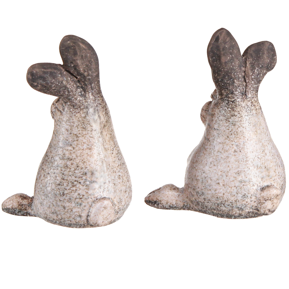 Dodaj humorystyczny i wesoły akcent swoim Wielkanocom dzięki tym zabawnym ceramicznym króliczkom wielkanocnym w kolorze brązowo-szarym. Małe ozdobne króliczki stanowią doskonałą ozdobę dekoracji wielkanocnych. Dzięki charakterystycznym czerwonym noskom, pulchnym policzkom i dwóm ślicznym białym ząbkom z pewnością wywołają uśmiech na twarzach gości. Te wyjątkowe ceramiczne figurki idealnie pasują do wnętrz w stylu vintage lub wiejskim i są idealne na powitanie wiosny. Umieść te przyjazne króliczki na stole w salonie lub użyj ich jako centralnego elementu dekoracji wielkanocnego stołu. Świetnie prezentują się także na udekorowanym parapecie. Charyzmatyczne zajączki wielkanocne są ozdobione mieszanką szarości i brązu, co sprawia, że przyciągają wzrok. Nieważne, czy szukasz nowej dekoracji wielkanocnej, czy chcesz poszerzyć swoją istniejącą kolekcję: te zabawne króliki przyciągają wzrok!