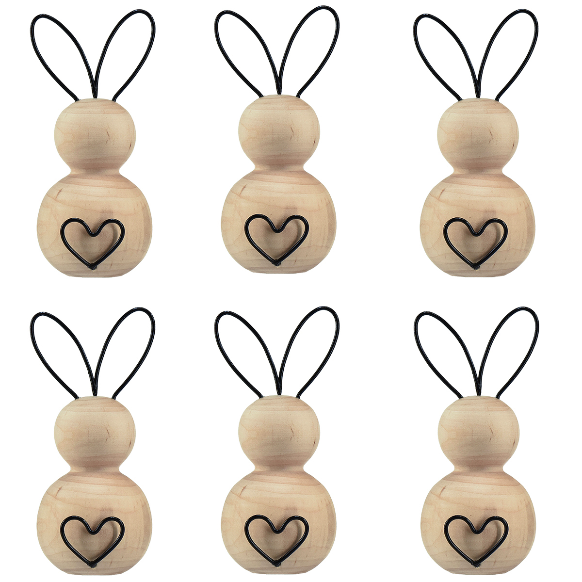 Zajączki wielkanocne drewno metalowe w kolorze naturalnej czerni wys. 10,5 cm 6 szt