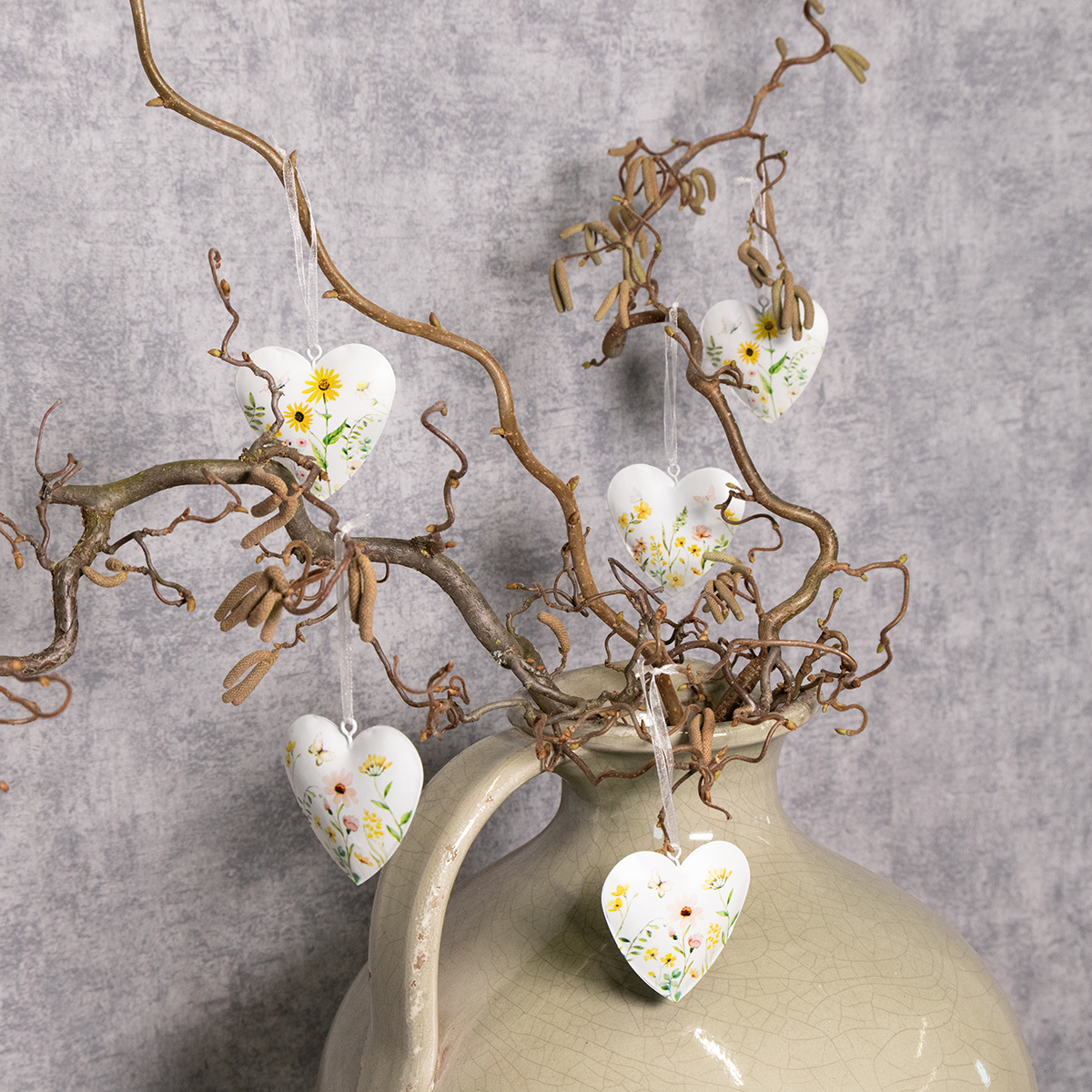 Zawieszki w kształcie serduszek z motywem kwiatowym jako dekoracja ścienna, 7cm, 6 szt.