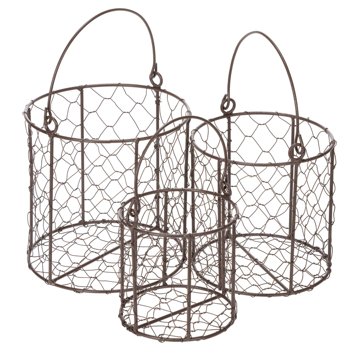 - Zestaw trzech drucianych koszyków w różnych rozmiarach
