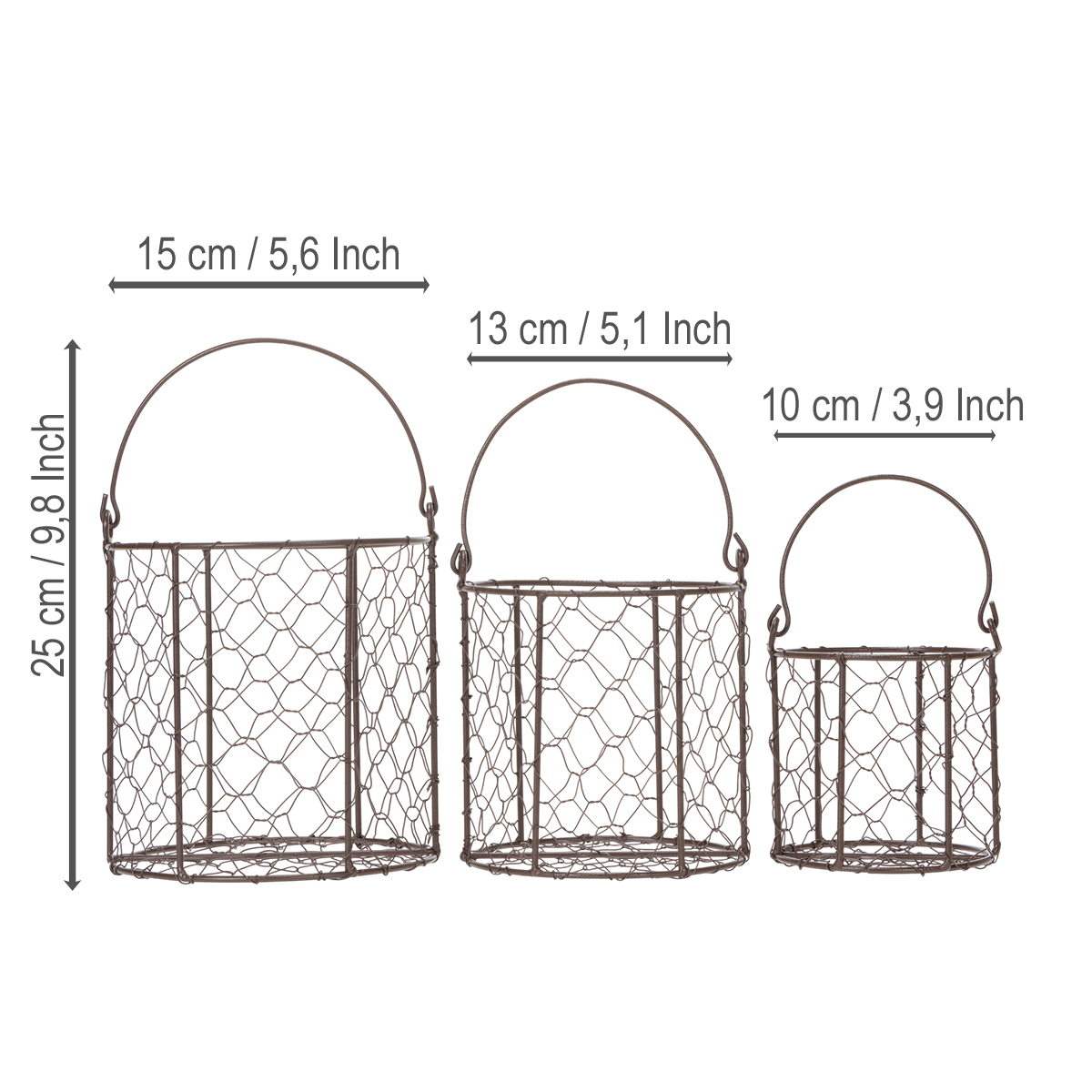 Zestaw koszyków drucianych idealny do kuchni i ogrodu, 25 cm, 1 zestaw