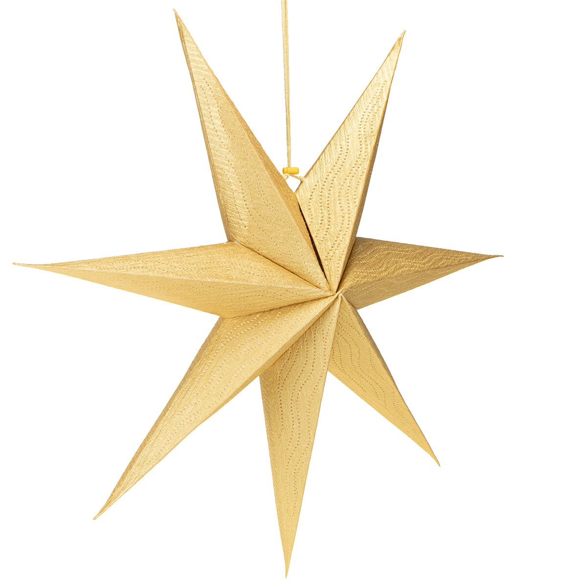 Ta papierowa gwiazda urzeka swoją prostą, ponadczasową elegancją. Delikatnie wykonana z wysokiej jakości papieru i wykończona w ciepłym, złotym odcieniu, idealnie wpasowuje się w różnorodne aranżacje. Materiał emanuje naturalnym urokiem, a jednocześnie jest wystarczająco wytrzymały, by przez lata zachwycać olśniewającym blaskiem. Gwiazda o średnicy 60 cm jest na tyle duża, że będzie ozdobą każdej aranżacji.