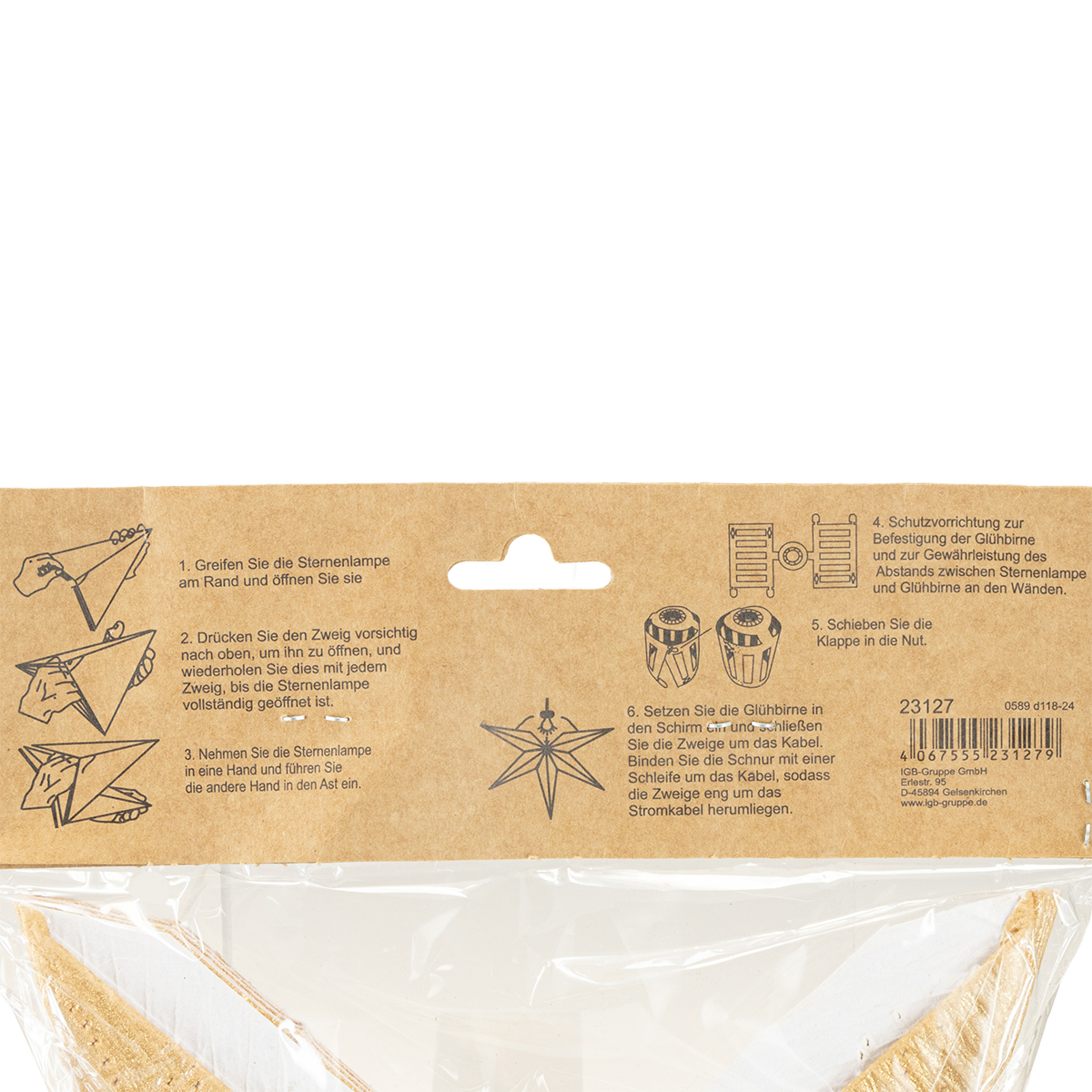 Ponadczasowy design tej poinsecji pozwala na łatwe łączenie jej z innymi elementami dekoracyjnymi: udekoruj ją lampkami choinkowymi lub po prostu powieś obok świec i gałązek jodły. Dla miłośników minimalistycznego stylu, gwiazda będzie prezentować się olśniewająco zarówno samodzielnie, jak i na ścianie w jednolitym kolorze. Dodaj standardową żarówkę lub inne źródło światła, a gwiazda będzie emitować przyjemnie ciepłe światło w ciemności – idealne do podkreślenia świątecznej atmosfery w Twoim domu. Niezależnie od tego, czy umieścisz ją nad świątecznym stołem, pośrodku okna, czy jako ozdobę centralną nad kominkiem, ta klasyczna poinsecja z pewnością przyciągnie wzrok każdego.